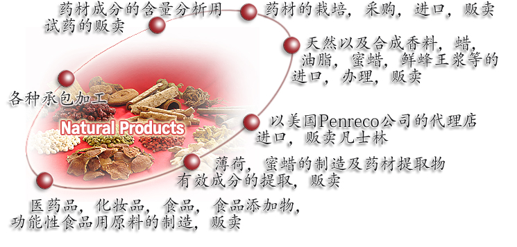 敝司创业以来做药材的栽培,采购,贩卖,进口贩卖的事业,根据这种经验一直开拓植物提取制造之道。一直以来在医药品分野当中,敝司提供了1000品目以上的大批成品。 根据以医药品制造培养的技术,活用素材由来的有效性,敝司提供安全而卫生的提取物类。