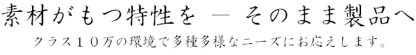 弊社の抽出設備は水をはじめ含水アルコールからアル コール抽出、受託製造においてはヘキサンでの抽出設 備も供えており、素材がもつ特性と可能性を最大限に 引き出すため、含有する成分の化学特性に応じた条件 で抽出を行っています。目的成分の移行率を考慮して 抽出温度・溶媒組成を決め、効率的な生産スケジュール のもと、柔軟な稼動性を実現しています。抽出工程で得 られた溶液は目的に応じて液剤へ調製されます。 調製工程においてはクラス10万の環境で、衛生的かつ 付加価値の高い液剤を生産しております。